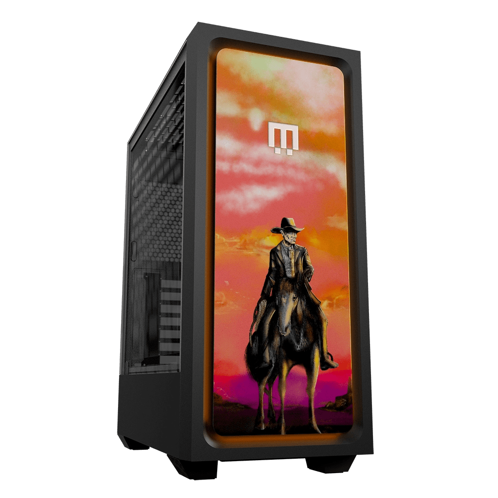 Riding through the crimson dusk, this lone gunslinger doesn’t need introductions. The desert knows his legend, and that’s enough.