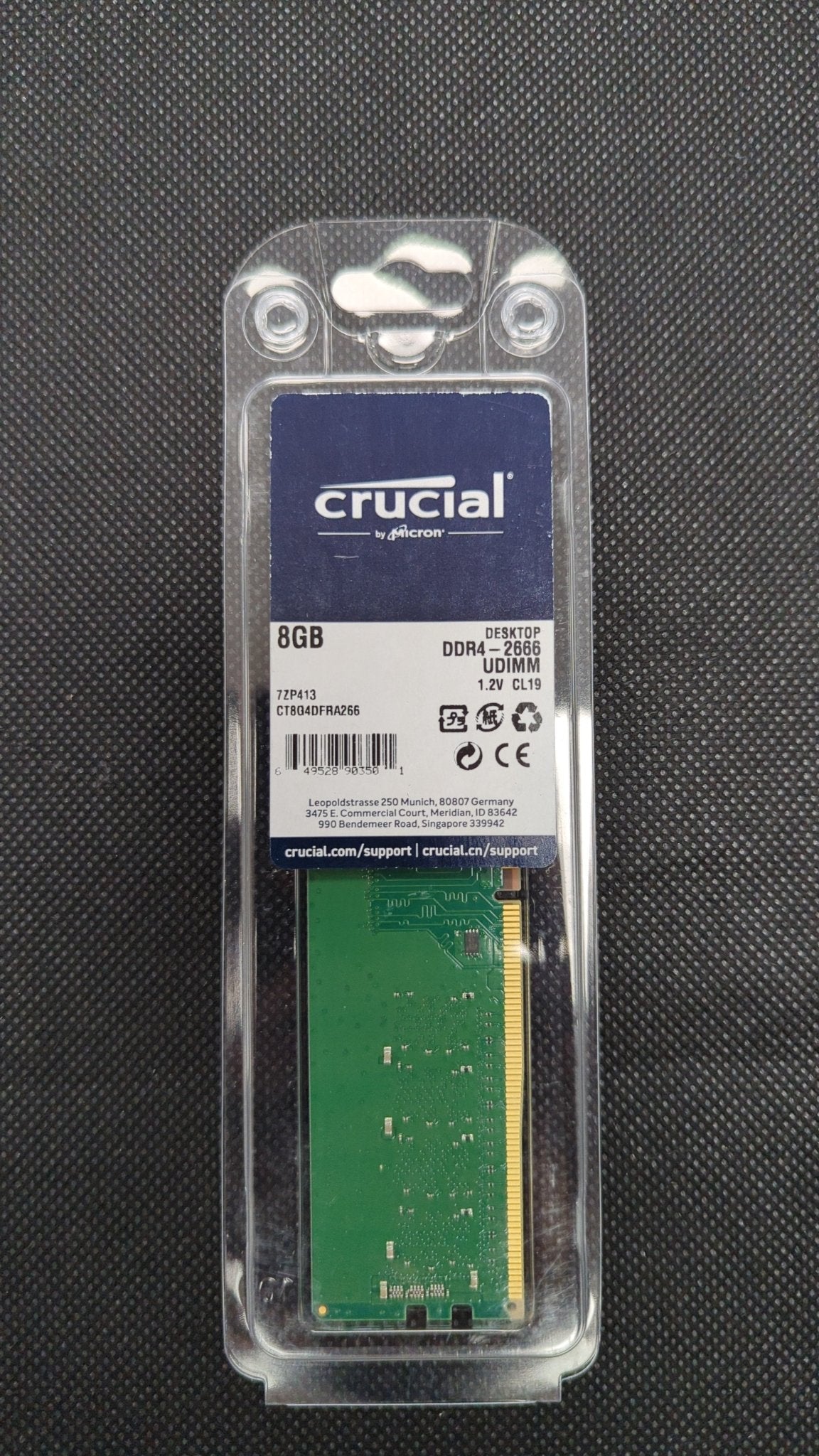 Recertified Outlet Store Component: Crucial UDIMM DDR4 from Micron Technology featuring a total capacity of 8GB consisting of 1x8GB modules. This kit provides DDR4-2666 MHz speed. All outlet component sales are final and sold as-is, with no MAINGEAR warranty. Some items may still be covered under the original manufacturer’s warranty, where applicable.